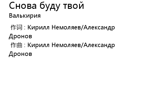| [00:00.000] | 作曲 : Кирилл Немоляев/Александр Дронов |