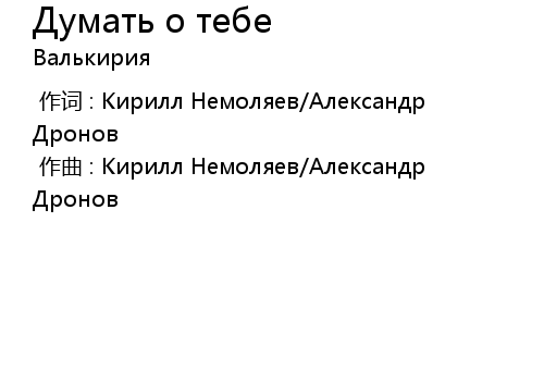| [00:00.000] | 作曲 : Кирилл Немоляев/Александр Дронов |