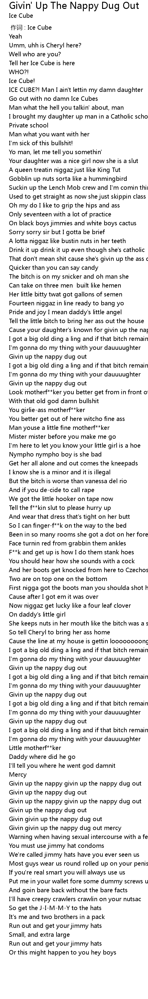 | [03:24.33] | Givin up the nappy givin up the nappy dug out |