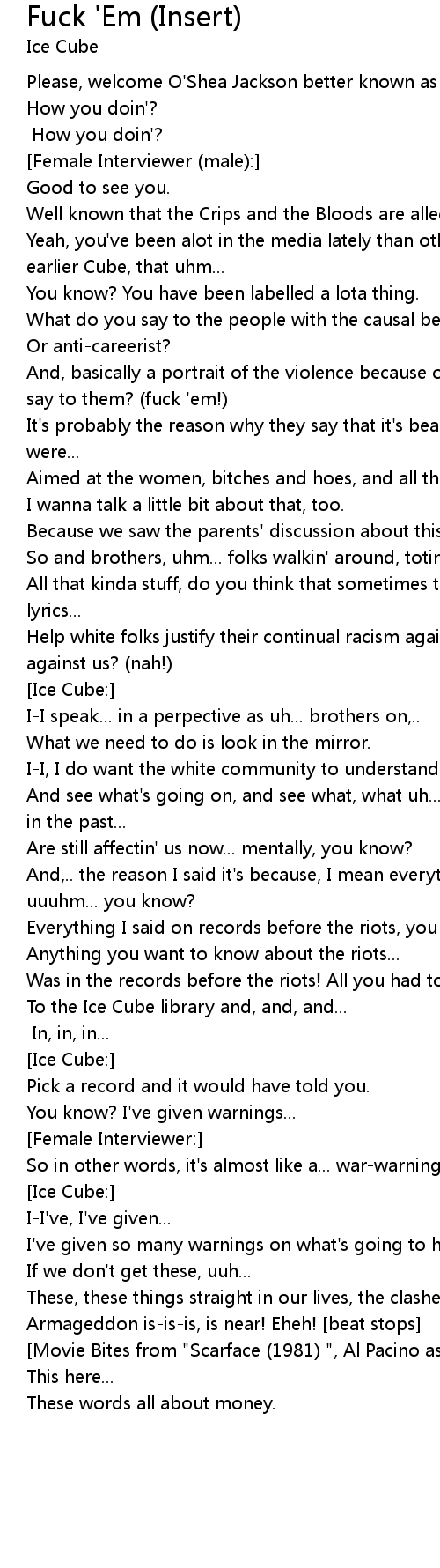 [Ice Cube:] How you doin'? |