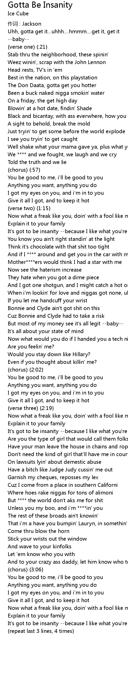 | Song | Gotta Be Insanity |