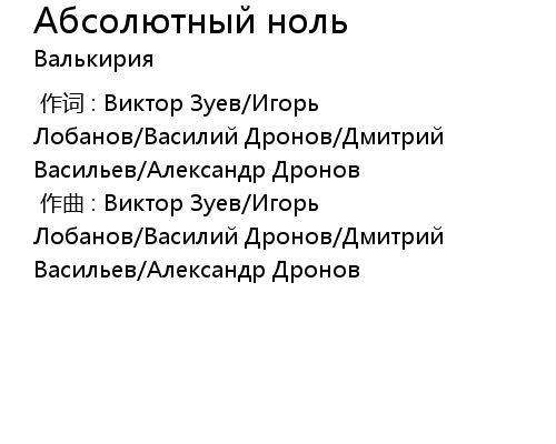 | Song | Абсолютный ноль |