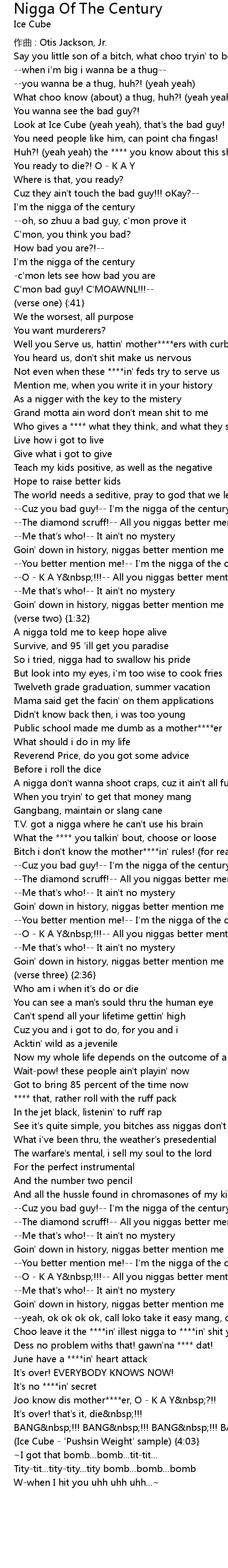 | --Cuz you bad guy!-- I'm the nigga of the century | |