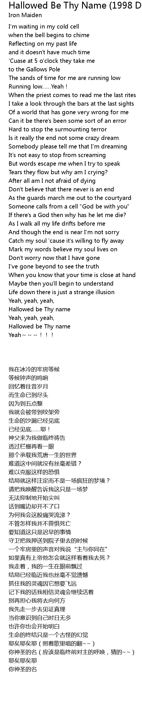 | Song | Hallowed Be Thy Name (1998 Digital Remaster) |