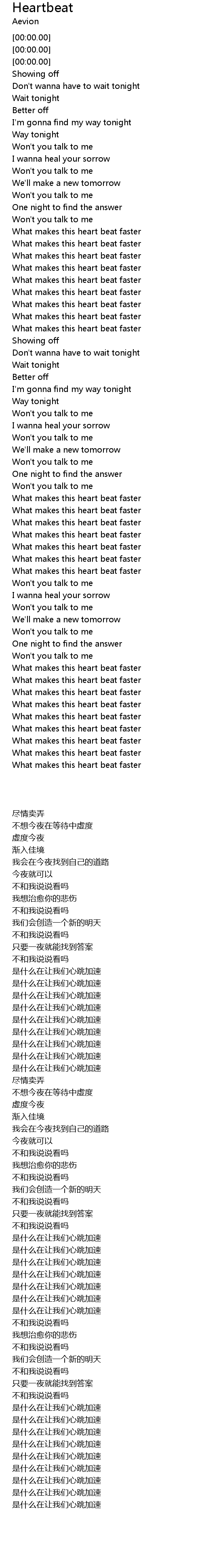 | [00:29.22] | What makes this heart beat faster |