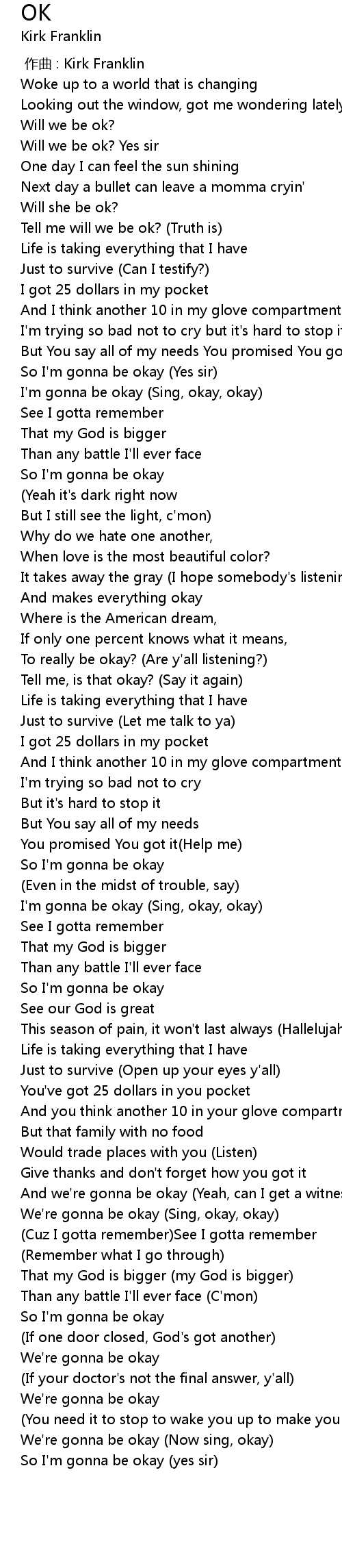 | [03:16.72] | And we're gonna be okay (Yeah, can I get a witness) |