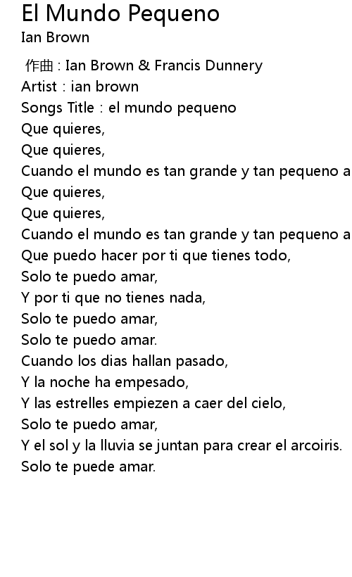 | [00:16.79] | Songs Title:el mundo pequeno |