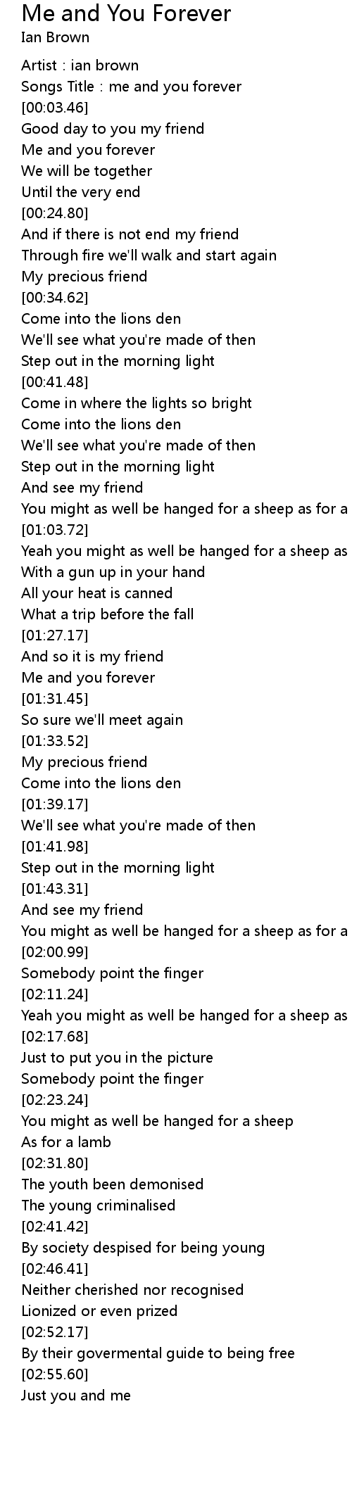 | [01:30.14] | Me and you forever |