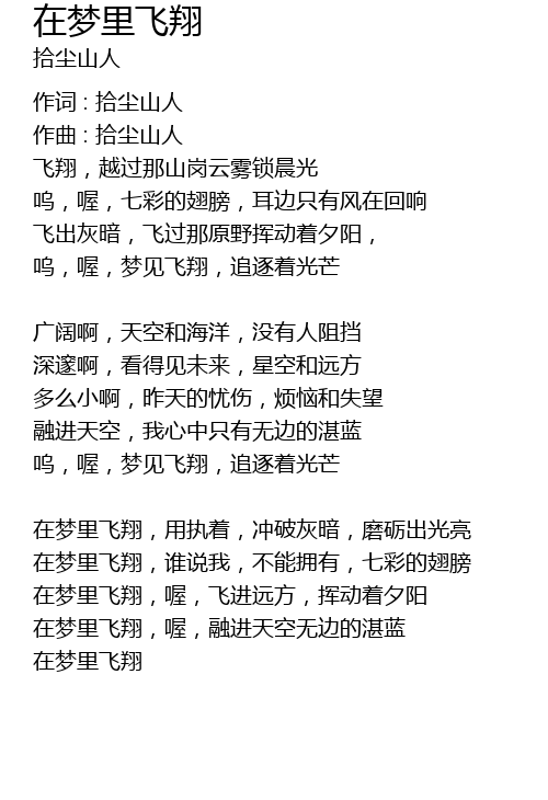 | zài mèng lǐ fēi xiáng, shuí shuō wǒ, bù néng yōng yǒu, qī cǎi de chì bǎng | |
