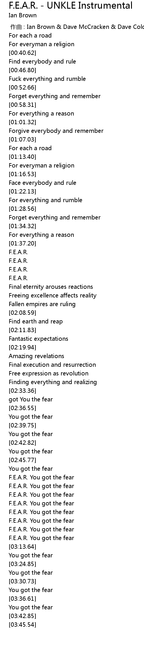 | Song | F.E.A.R. - UNKLE Instrumental |