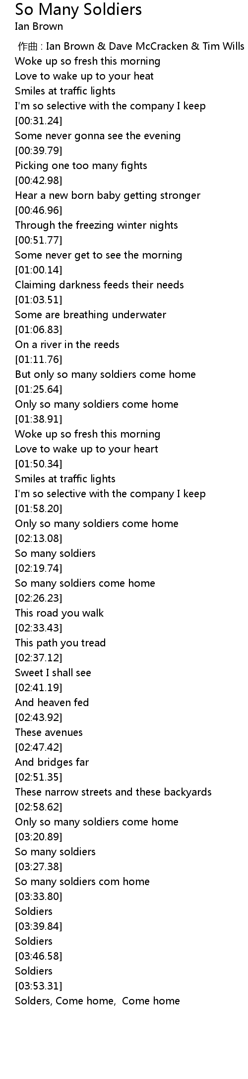 | [03:11.58] | Only so many soldiers come home |
