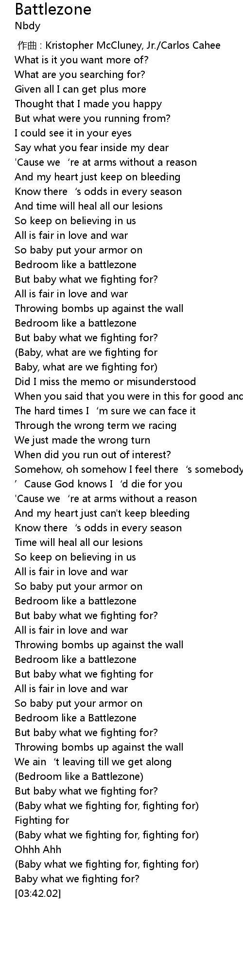 | [02:52.36] | But baby what we fighting for |