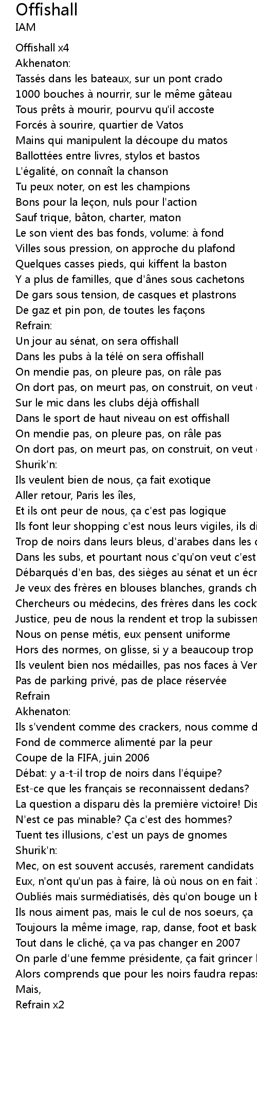 | On dort pas, on meurt pas, on construit, on veut être offishall | |