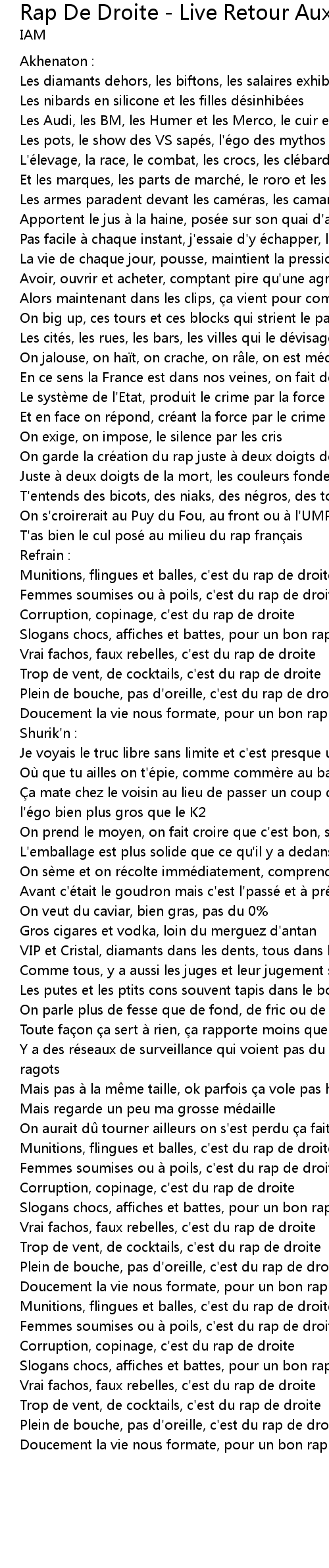 | Song | Rap De Droite - Live Retour Aux Pyramides 14/03/2008 |