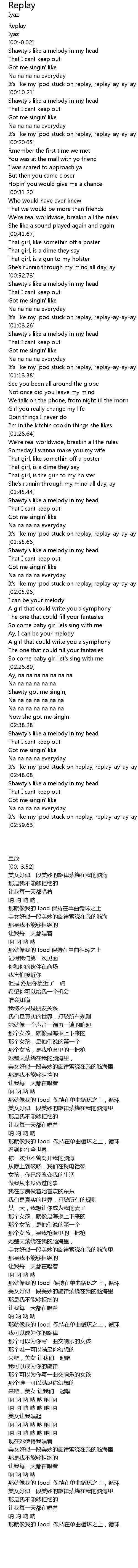 | [00:18.10] | It's like my ipod stuck on replay, replay-ay-ay-ay |