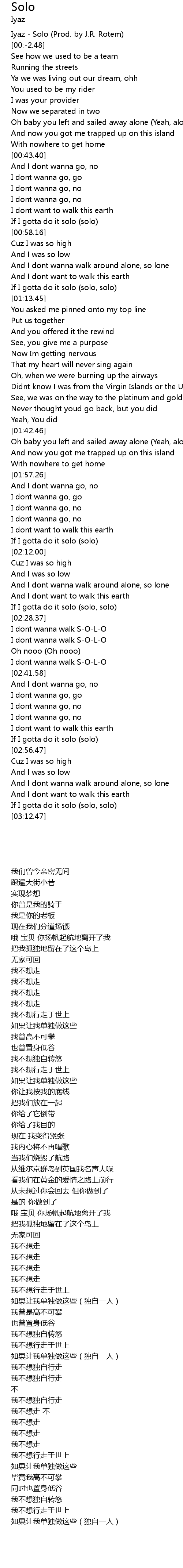 | [01:09.39] | If I gotta do it solo (solo, solo) |