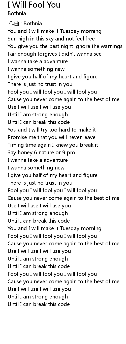 | [00:54.000] | Fool you I will fool you I will fool you |