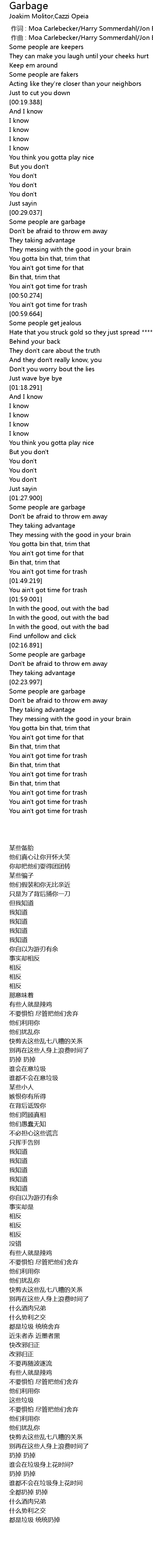 | [01:28.088] | Some people are garbage |