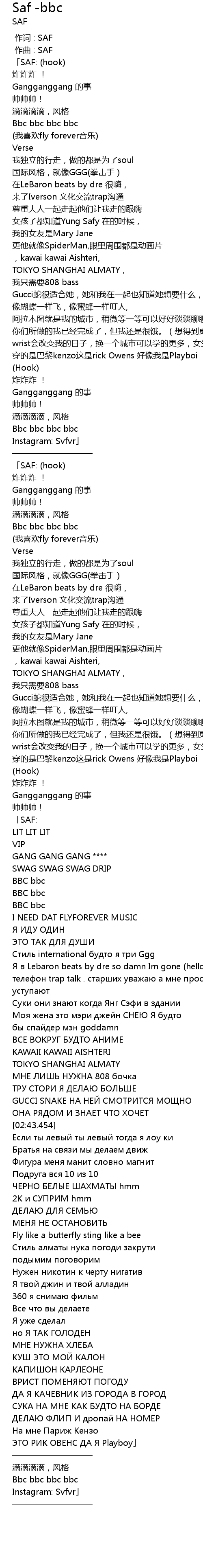 | [00:00.000] | 作词 : SAF |