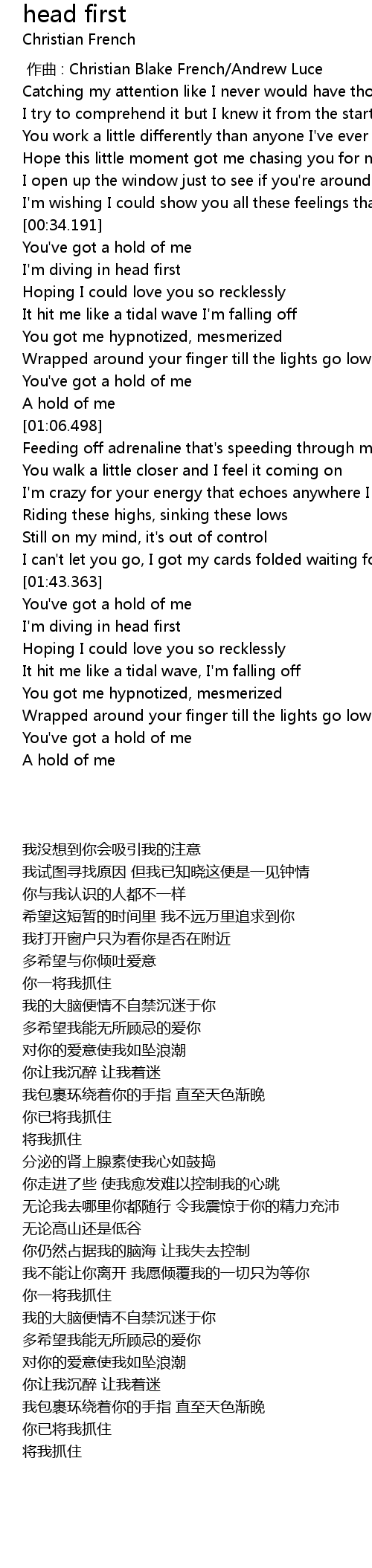 | [00:00.000] | 作曲 : Christian Blake French/Andrew Luce |