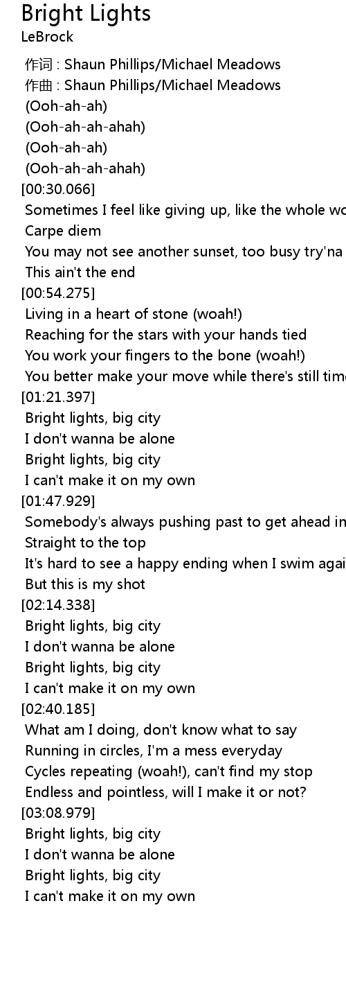 | [02:15.123] | Bright lights, big city |