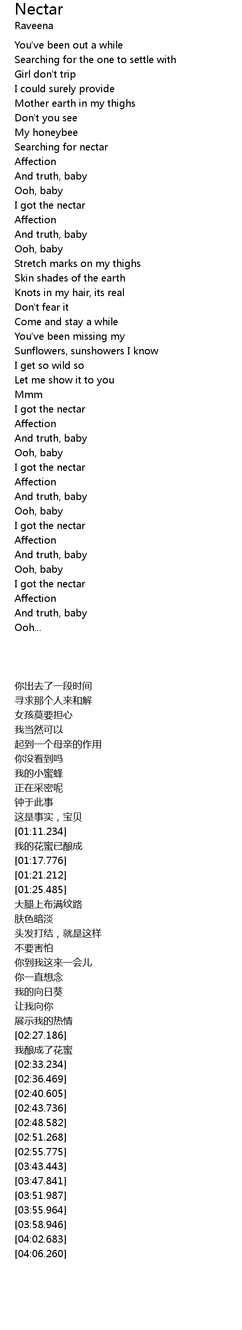 | [02:28.501] | I got the nectar |