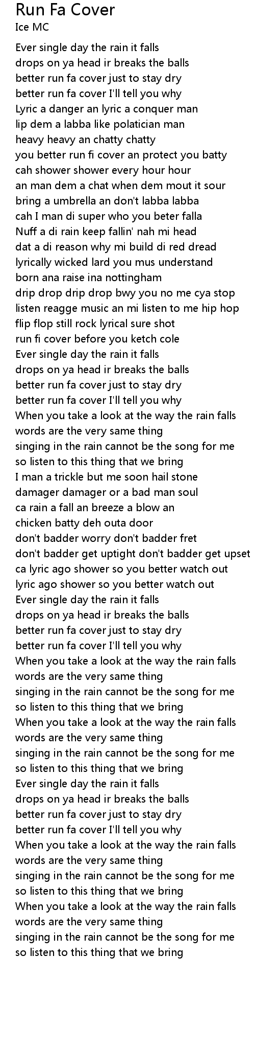 Nuff a di rain keep fallin' nah mi head |