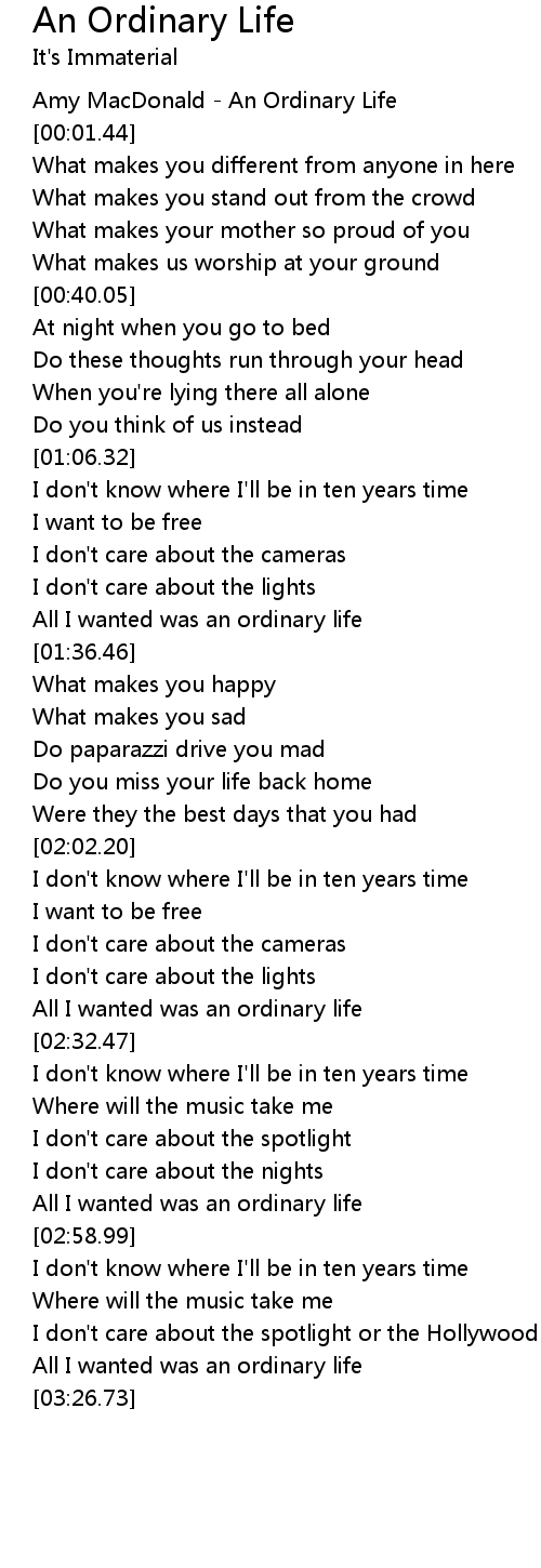 [00:00.71] Amy MacDonald - An Ordinary Life