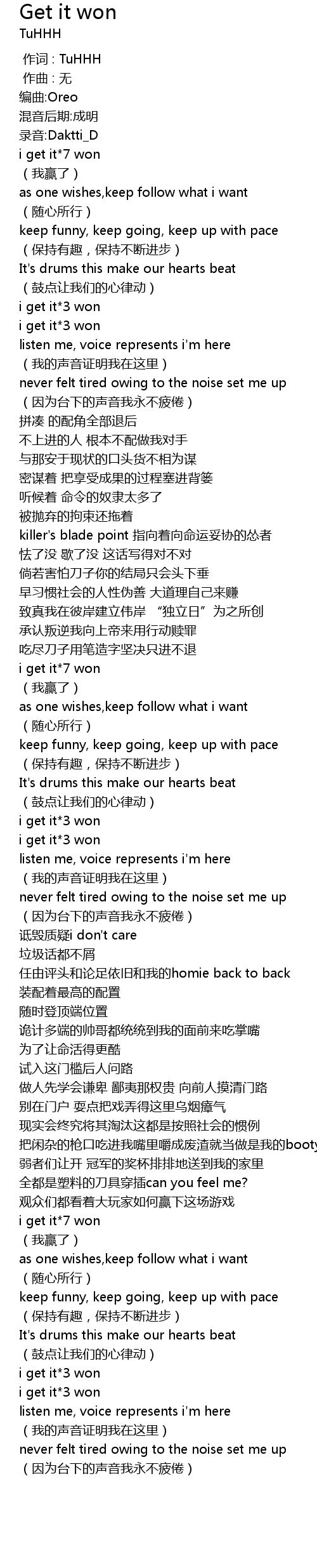 | [02:10.950] | 弱者们让开 冠军的奖杯排排地送到我的家里 |