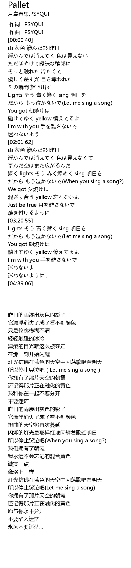| [04:13.52] | 融けてゆく yellow 憶えてるよ |