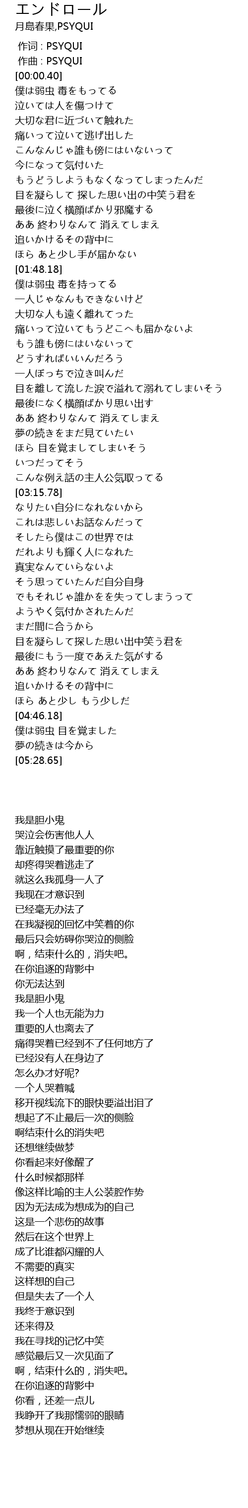 | [01:50.59] | 僕は弱虫 毒を持ってる |