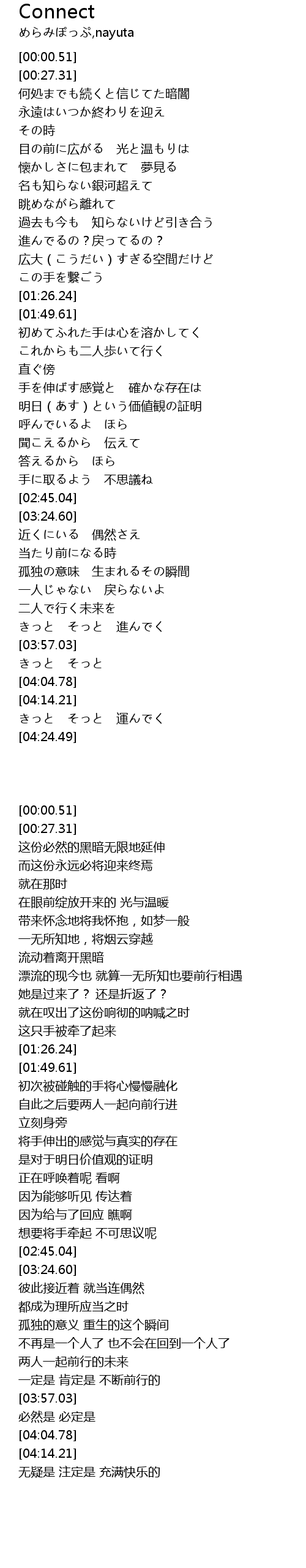 | [01:50.33] | 初めてふれた手は心を溶かしてく |