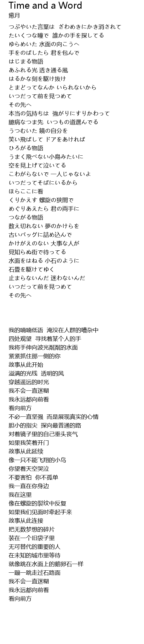 | [00:18.903] | つぶやいた言葉は ざわめきにかき消されて |