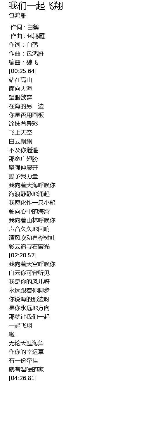 | [03:25.64] | 一起飞翔 |