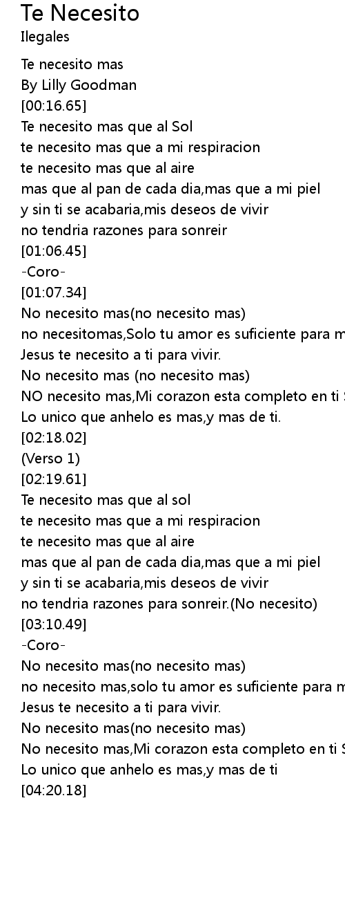 | [01:43.45] | No necesito mas (no necesito mas) |