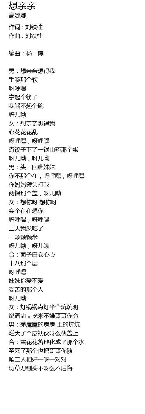 | 女:想亲亲想得我 | |