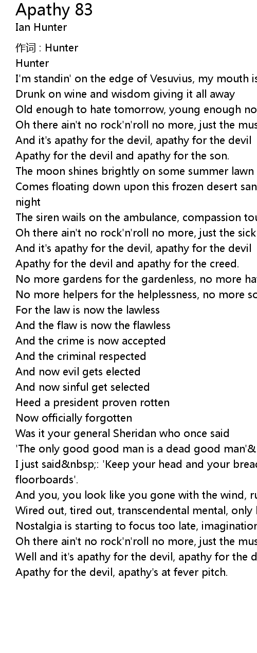 | Well and it' s apathy for the devil, apathy for the devil | |