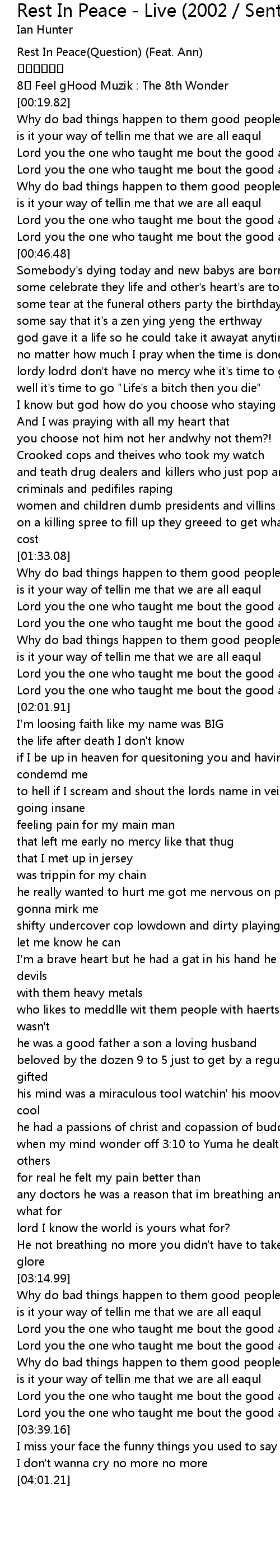 | [00:06.17] | Rest In Peace Question Feat. Ann |