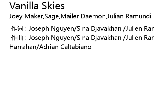 | [00:00.000] | 作曲 : Joseph Nguyen/Sina Djavakhani/Julien Ramundi/Oliver Harrahan/Adrian Caltabiano |