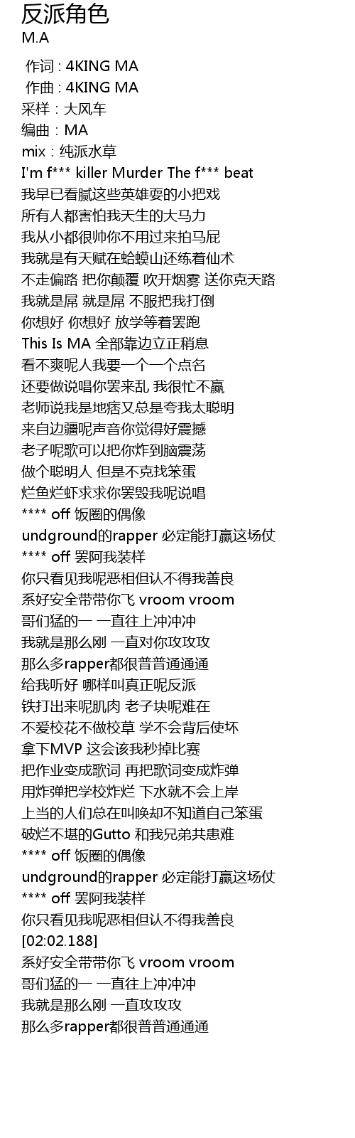 | [00:31.584] | I'm f*** killer Murder The f*** beat |