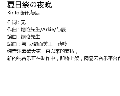 | 新的纯音乐正在制作中,即将上架,网易云音乐平台首发 |