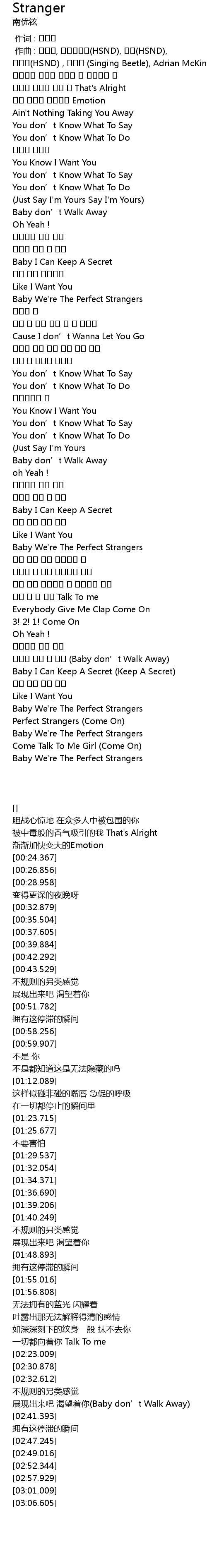 | [03:06.605] | Baby We' re The Perfect Strangers |