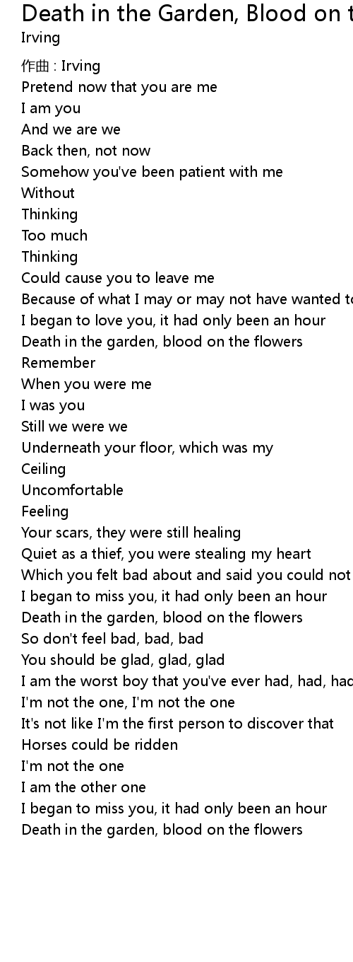 | Song | Death in the Garden, Blood on the Flowers |