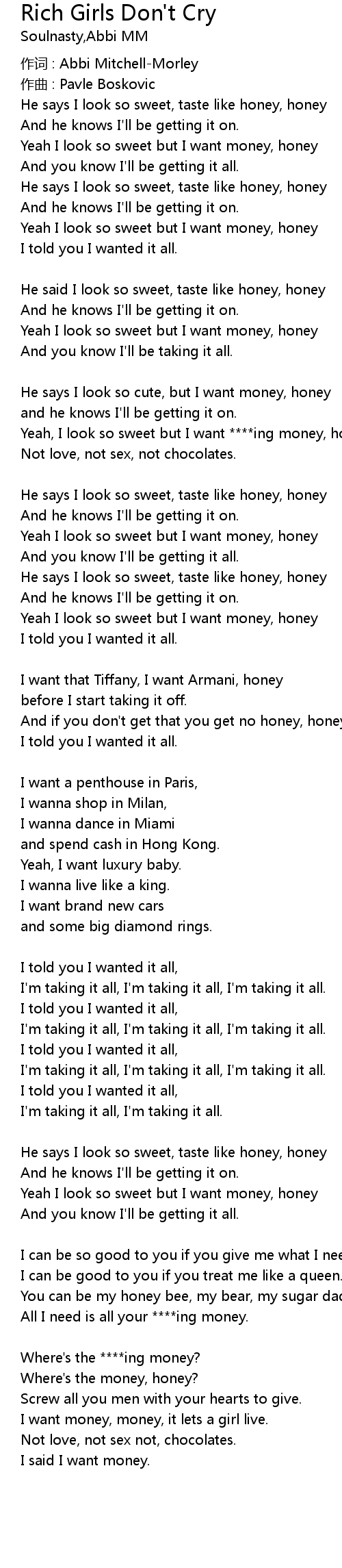| Yeah, I look so sweet but I want ****ing money, honey | |