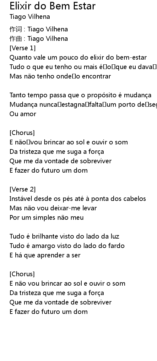 | Song | Elixir do Bem Estar |