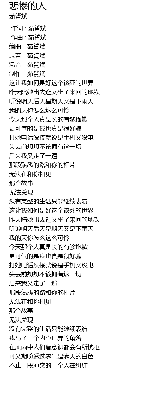 | [01:55.555] | 我的天你怎么这么可怜 |