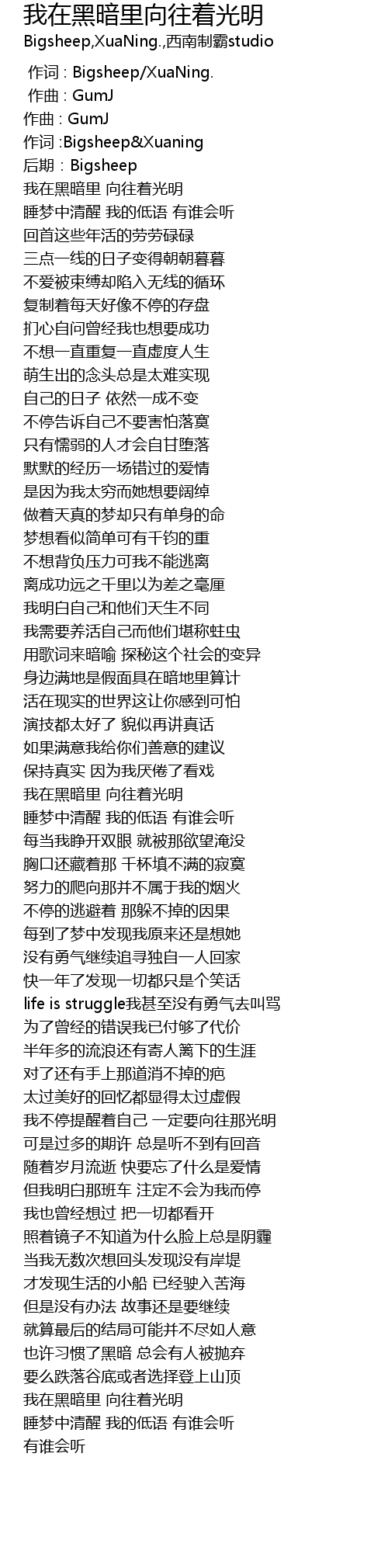 | [00:00.000] | 作词 : Bigsheep/XuaNing. |