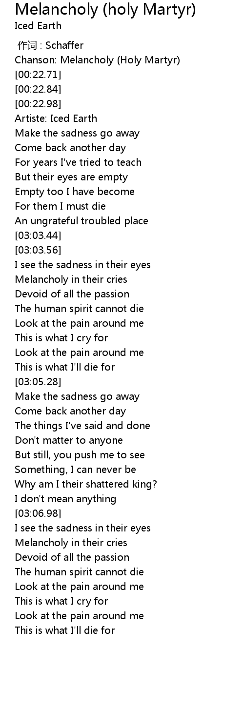 | [00:22.57] | Chanson: Melancholy Holy Martyr |