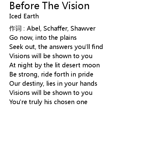 | Song | Before The Vision |