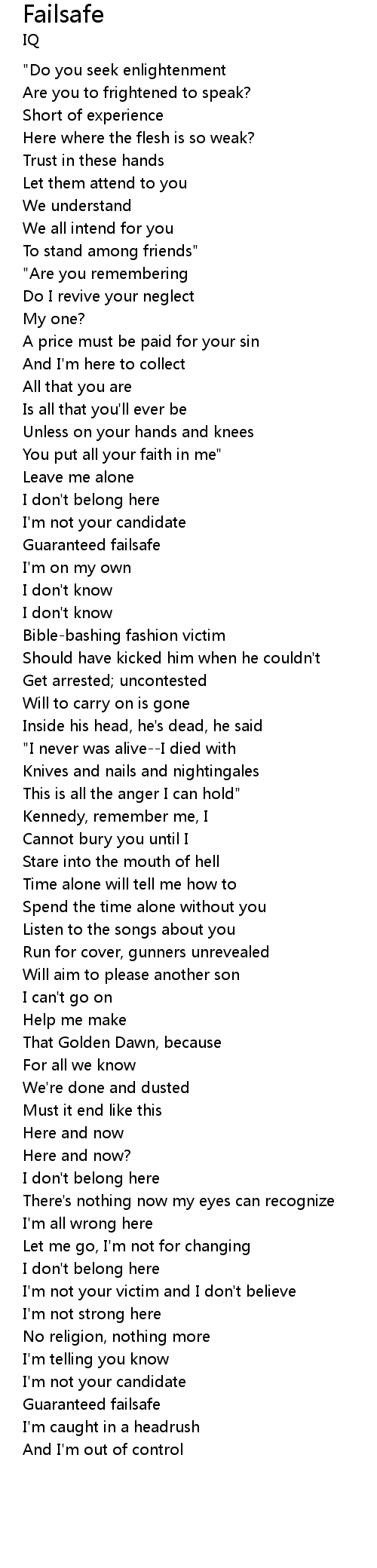 You put all your faith in me" |
